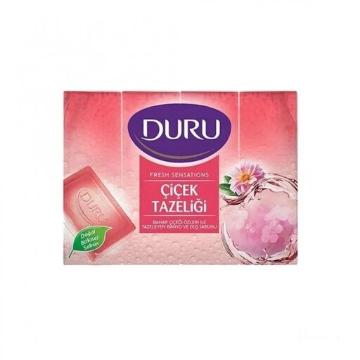 صابون حمام دورو با رایحه گل های بهاری دورو محصولی از کشور ترکیه می باشد و در بسته 4 عددی عرضه بازار شده است. این صابون از مواد کاملا طبیعی ساخته شده است و بدن را به بهترین شکل تمیز و پاکیزه می کند. همچنین دارای دانه های لایه بردار است که این مزیتی مهم به شمار می آید و سلول های مرده را از بین می برد و پوست را لایه برداری می کند.