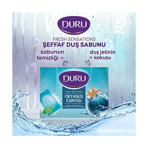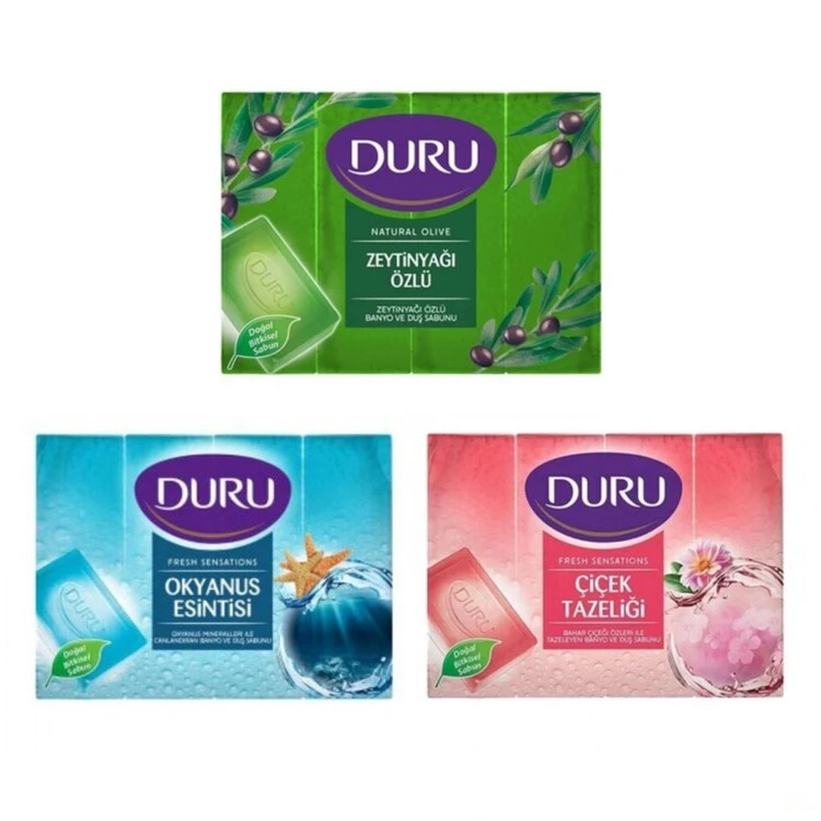 صابون از قدیم برای حمام کردن، شستشو، تمیز کردن و پاکیزگی استفاده می شد و همچنان برای بسیاری از افراد شستن بدن با صابون مطبوع است. اما استفاده طولانی مدت برخی صابون های معمولی سبب خشکی، التهاب، سوزش و احساس کشیدگی در پوست بعد از استحمام می گردد و مواد لازم و ضروری پوست را از بین می برند. برند ترکیه ای دورو که بیش از 90 سال است در زمینه تولید محصولات بهداشتی فردی و شوینده فعالیتی درخشان دارد؛ در این زمینه صابون های سازگار با PH پوست و با قدرت پاک کنندگی ملایم تولید و عرضه بازار می کند. صابون حمام دورو در بسته 4 عددی انتخابی اقتصادی به نظر می رسد و می توان به صورت خانوادگی از آن استفاده کرد. DURU محصولی متفاوت از صابون های معمولی است و برای استفاده روزانه ایده آل است. رایحه اقیانوس احساس تازگی را در هر استفاده به ارمغان می آورد و عطر خوشایندی بر پوست به جا می گذارد.