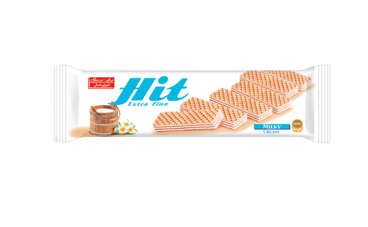 ویفر هیت برند شیرین عسل _ با طعم کرم شیری، مناسب برای پذیرایی و دورهمی های دوستانه، مقوی و خوشمزه، که در وزن های 40 و 150 گرم ارائه می گردد.