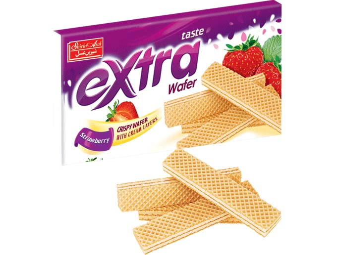 ویفر اکسترا برند شیرین عسل _ با طعـم توت فرنگی، مناسب برای پذیرایی و دورهمی های دوستانه،مقوی و خوشمزه،که در وزن های27، 45، 70 و 100گرمی ارائه می گردد.