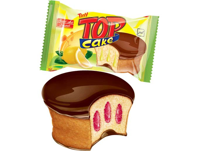 تاپ کیک مغزی کرم لیمو با روکش شکلاتی تاینی 40 گرم