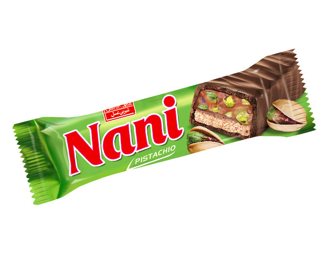 شکلات بار نانی مغزدار نوقا و کارامل پسته ای 40 گرمی