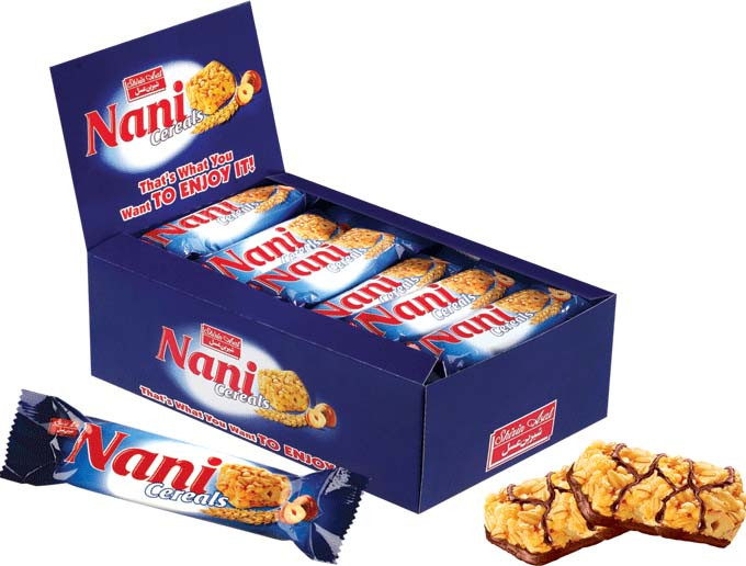 شکلات نانی برند شیرین عسل _ با طعم غلات حجیم شده، شکلات مجلسی و خوش طعم، تهیه شده از غلات کامل، سرشار از انرژی که در وزن 30 گرم ارائه می گردد.