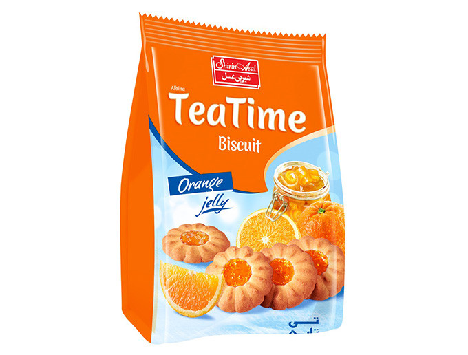بیسکویت تی تایم برند شیرین عسل _ با طعـم مغزی مربای پرتقال، خوش طعم و مقوی برای دوستاران کوکی، مناسب برای پذیرایی که در وزن 200 گـرم ارائه می گردد.