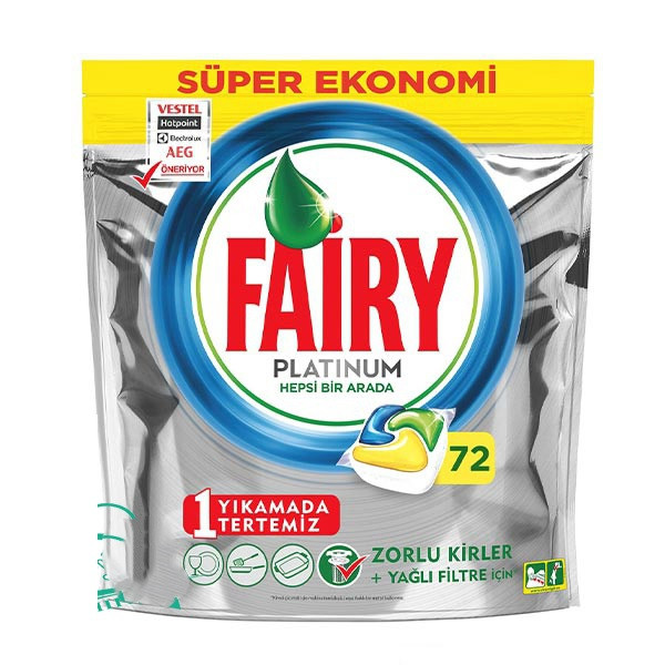 قرص ماشین ظرف شویی فیری پلاتینیوم 72 عددی محصولی ویژه که قدرت تمیزکنندگی بالایی دارد.