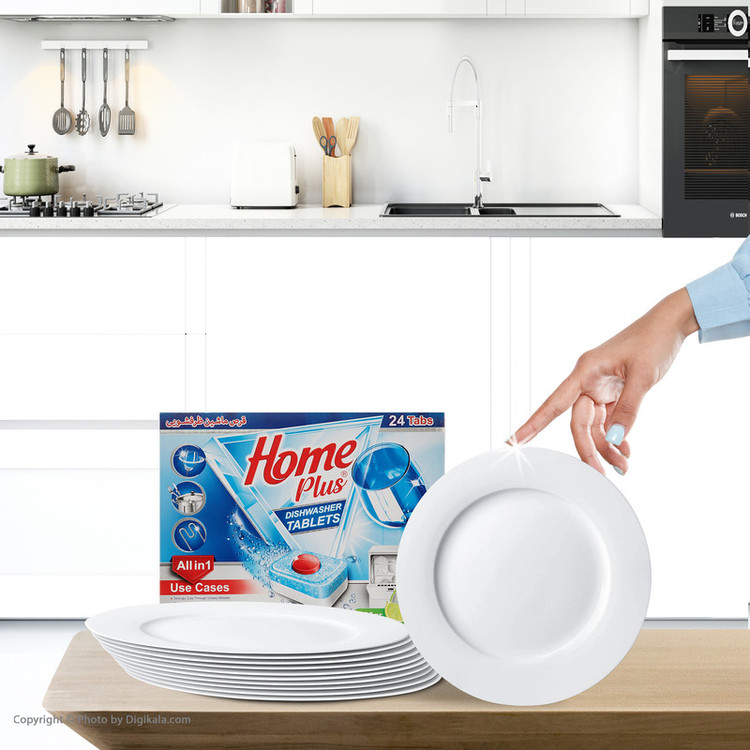 قرص ماشین ظرفشویی حاوی مواد ضروری برای شستشوی بهینه ظروف در ماشین ظرفشویی است. مواد فعال در سطح، هنگامی که با آب مخلوط میشوند، بقایای مواد غذایی را از روی ظروف جدا کرده و میشویند. قرص ظرفشویی همچنین شامل آنزیمهایی است که مواد نشاستهای و پروتئینی را تجزیه کرده و از بین میبرد. قرص ظرفشویی به گونهای طراحی شده است که به مقابله با مشکلات ناشی از سختی آب کمک کرده و به علت دارا بودن سفید کننده ایمن، سرسختترین لکهها را نیز ازبین میبرد.پس از آنکه قرص ظرفشویی را در محفظه شوینده قرار دهید، دستگاه به تدریج و در زمان مناسب محتوای قرص را آزاد میکند و اجازه میدهد که قرص در آب تجزیه شود و ظروف شما را تمیز کند. قرص ماشین ظرفشویی هوم پلاس، علاوه بر چربی زدایی قوی و از بین بردن بوی بد ظروف، منجر به براق و درخشان شدن ظروف استیل و شیشه می گردد. همچنین با جلوگیری از تشکیل رسوب در ماشین ظرفشویی به طول عمر آن می افزاید