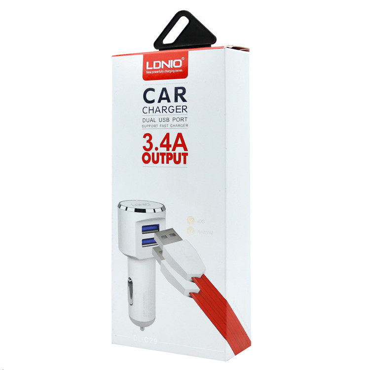 شارژر فندکی مدل DL-C-29 توسط برند الدینیو با جنسی از پلاستیک ABS ساخته شده است که از مقاومت نسبتا مطلوبی در برابر فشار، ضربه و گرمای بیش از حد برخوردار می باشد. این شارژر مجهز به دو پورت USB بوده و با حداکثر شدت جریان عبوری ۳٫۴ آمپر در ۵ ولت و قابلیت شارژ سریع قادر است به طور همزمان و با توان ۱۷ وات، دو دستگاه مختلف مانند گوشی موبایل، تبلت و … را به شکل ایمن شارژ نماید.